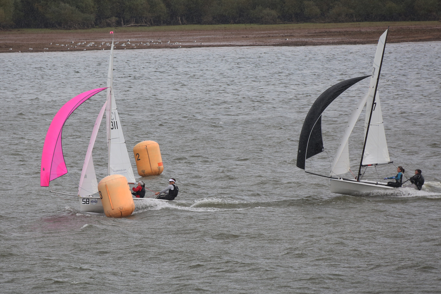 Race officer, John Smalley, set up the course, and with the wind kindly blowing South by West down the length of the lake, the windward mark was set in the far distance, a spreader mark to keep the fleet apart as they rounded, and two leeward marks to give the choice and avoid the gybe at the bottom of the course.