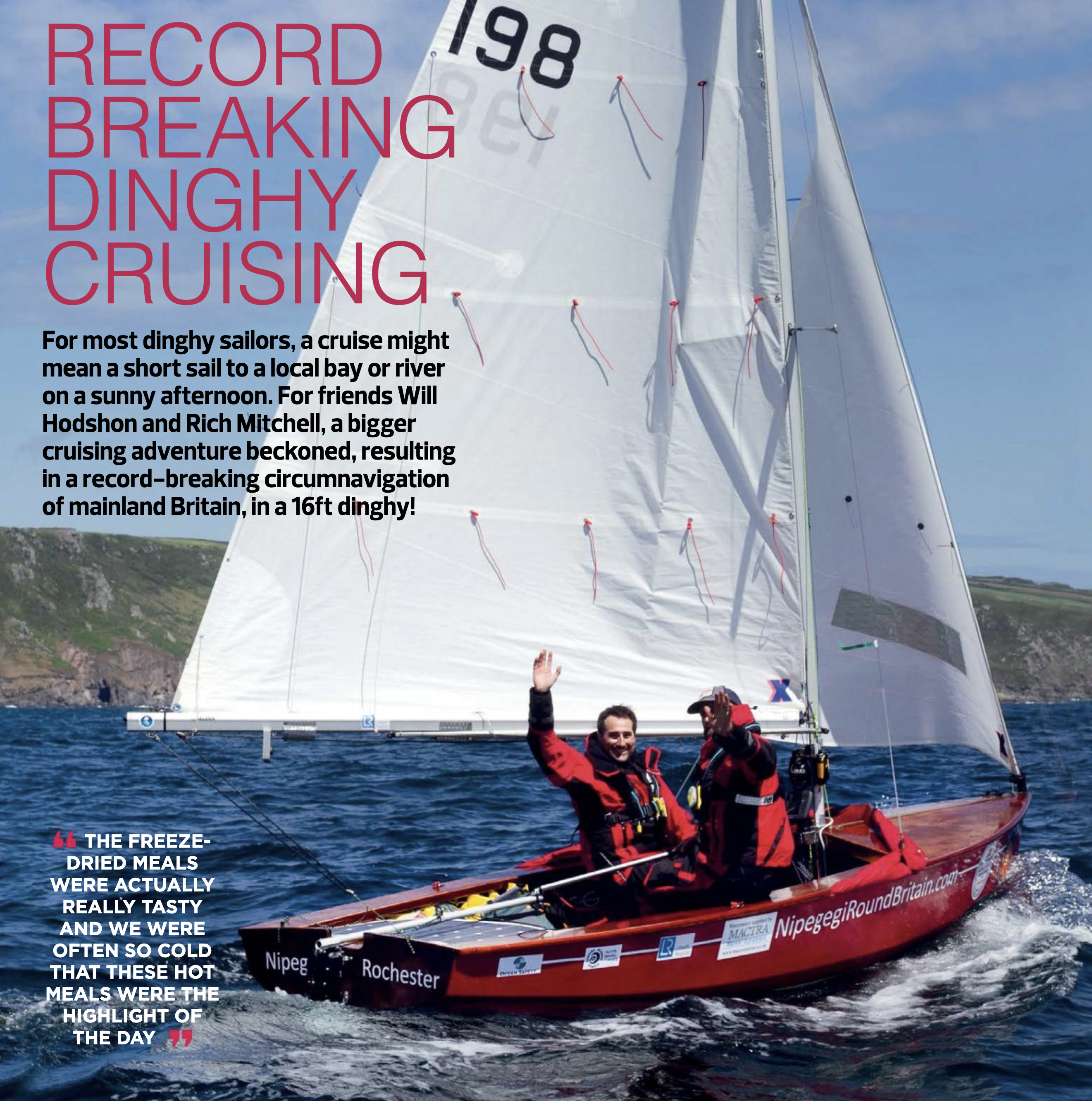 Will Hodshon and Rich Mitchell sailed a Wayfarer anti-clockwise around Britain; they smashed the record for the rounding in an open boat, and they were the first to complete the challenge non-stop and unassisted.