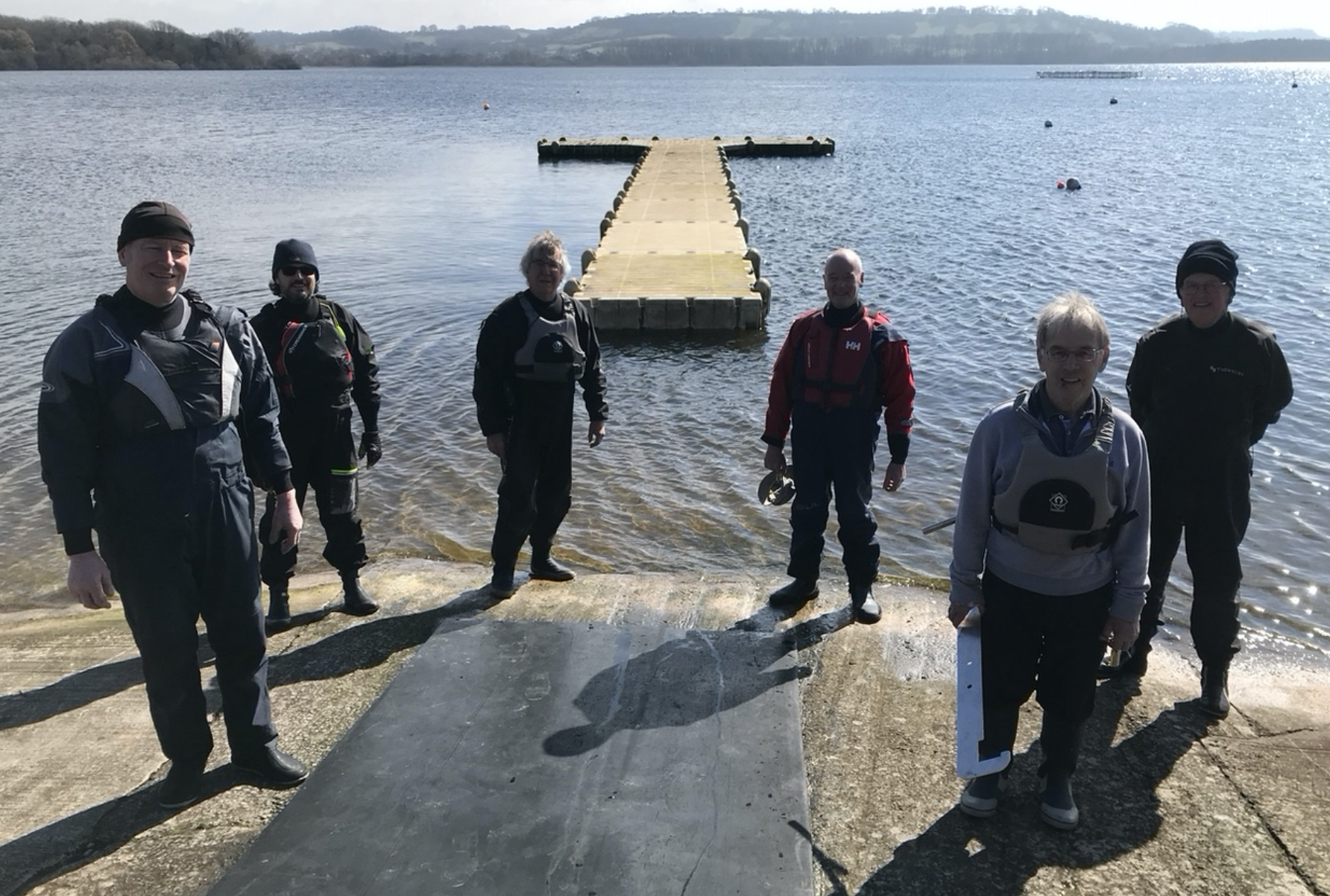 On behalf of all of us, particularly those denizens of the Southern half of the dinghy park, often with boats heavier than a small car, I want to thank the team that worked to reassemble the hammerhead pontoon. As the pictures show, Simon Conway, John Bone, Allen Marsh, Mike Higgins and Andy Jones did a great job on a very pleasant sunny day. Thank you.