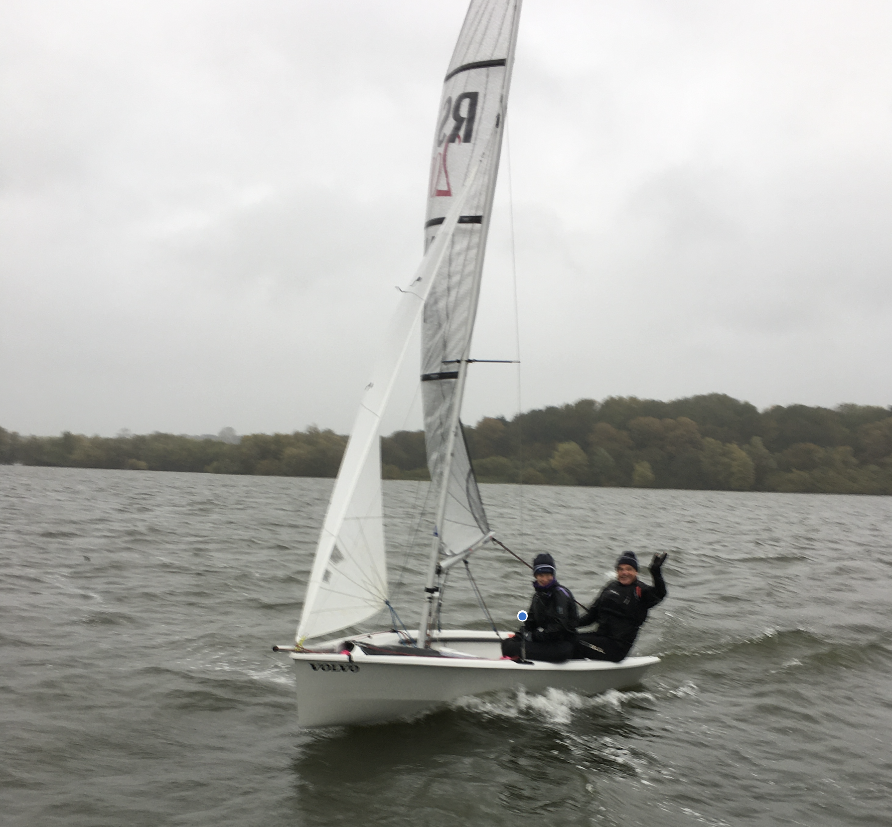 Bristol Corinthian sailors ruled the waves with newly-weds Alistair and Helen Norris winning and John Teague and Naomi Pound in third place. F Mainwaring and Liz Teague from Exe S.C. split them up in second place. These three shared the four race wins between them. 5 Chew boats were in the fray with fleet captain, James Williams finishing 9th and Dave Sweet 10th. Both had grabbed hot-shot crews from other fleets; James had Lizzie Cooke at the front and Dave borrowed Derian Scott from her Fireball.