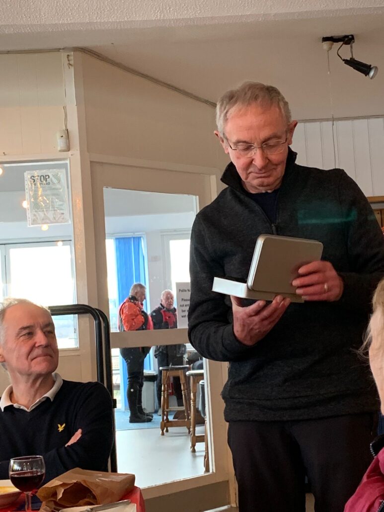 After the trip to the Island everyone then enjoyed a Christmas lunch, and a couple of awards were also made that had been held over from the AGM – the prestigious President’s Trophy was awarded to Brian Brooks ( it was hard to believe he had never been awarded this, so much has he contributed to the club over so many years), and a small gift was also given to Steve Turner, who handed over the reigns (should that be tiller/wheel!) as Club Powerboat Bosun during the year after many countless hours working to keep our RIBs in tip top shape.