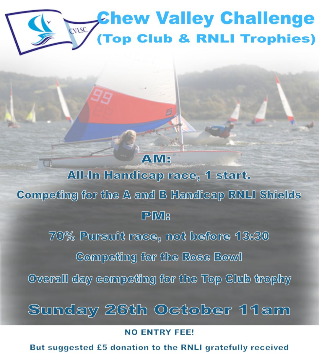 Nick’s delivered some informal race coaching and will soon be awarding the hotly contested Chew Crew Autumn Race trophy. The ‘Youth Start’ in Sunday racing will continue until Christmas, for anyone keen to brave the autumn wind and rain.