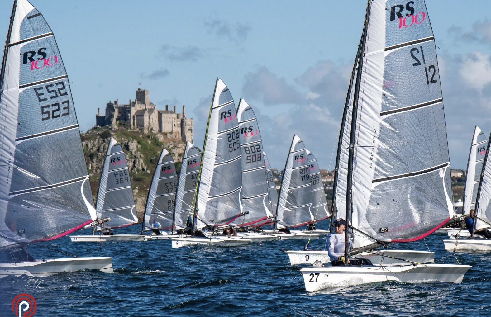 5 RS100s (Andy Jones, David Smart, Jaye Rickards, Jon Elmes and Maggie Eyre) travelled to Mounts Bay for their nationals. With a full on day 3, a 9 race series was sailed with Andy Jones finishing best of the Chew boats in 2nd overall.