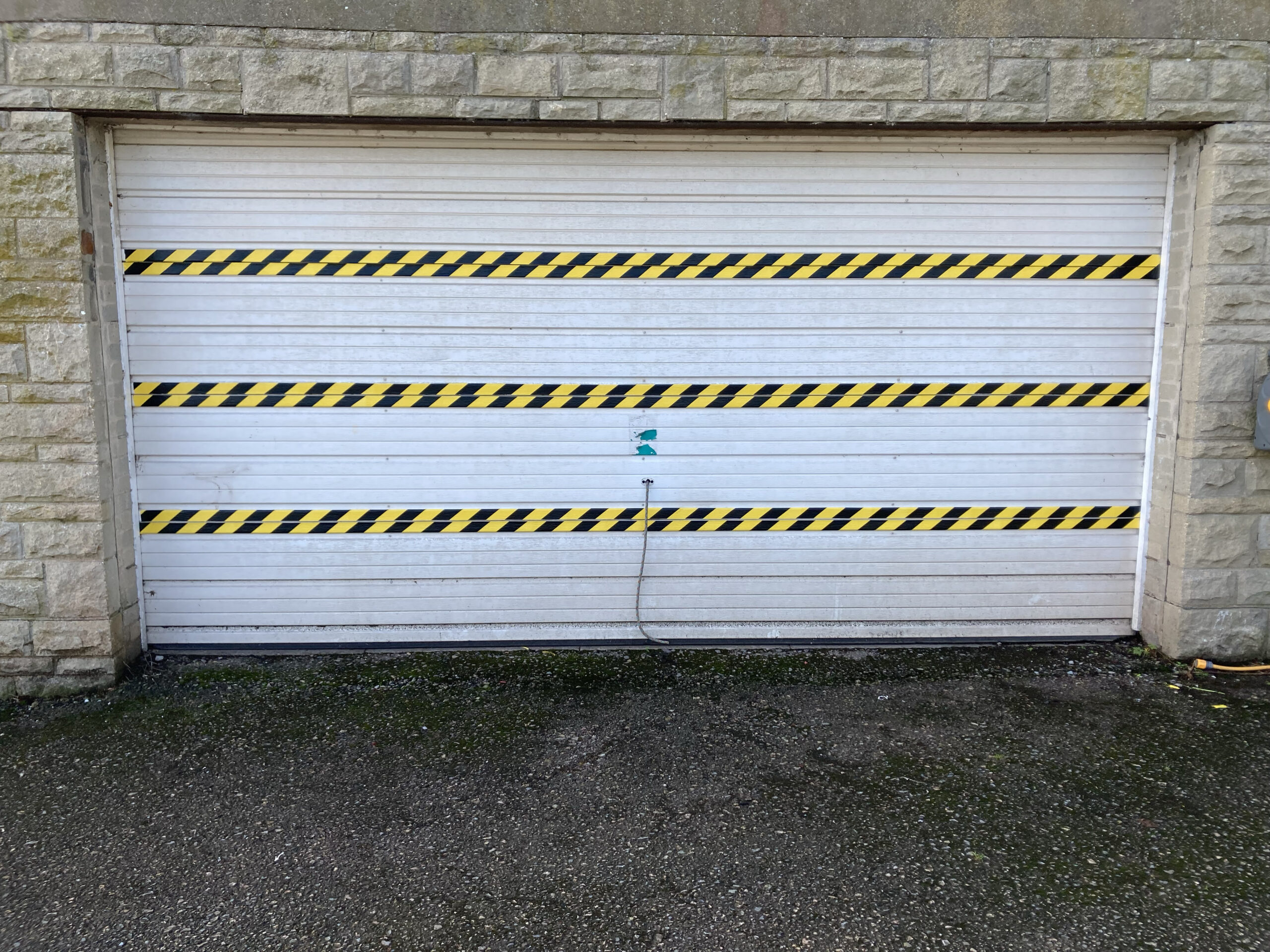 There is a rope handle that has now been affixed that should be used to pull down the door if you are doing so from the outside, and warning tape etc now in place as a visible reminder while we consider if any further action is necessary.