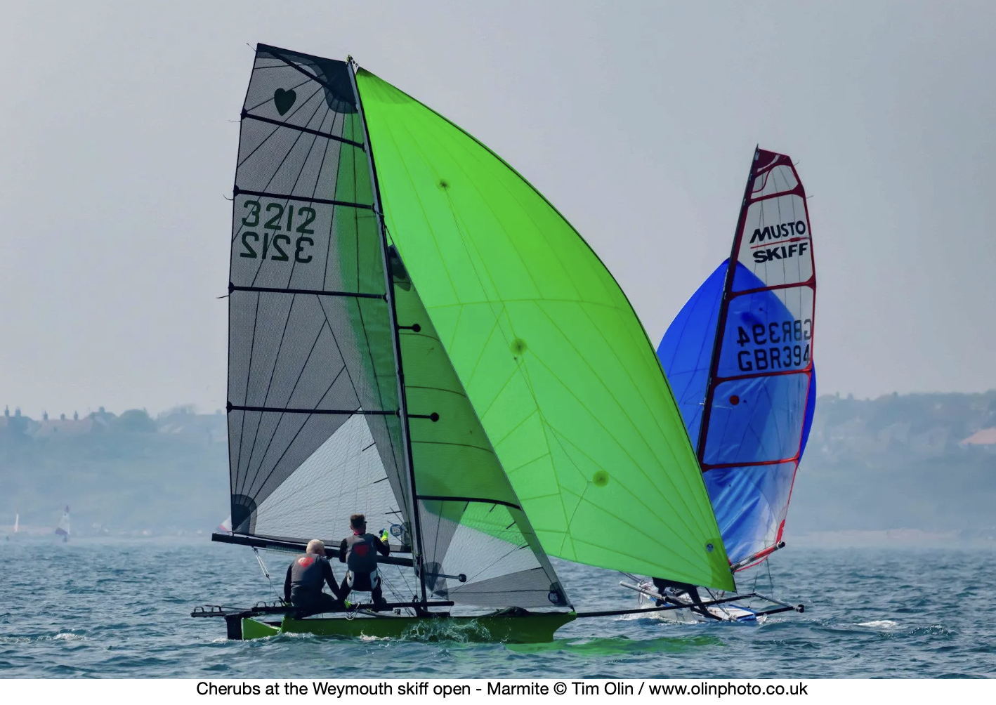 The faster asymmetrics have also been on the road, with Paul Croote winning the Cherub Inlands at Grafham, and only missing the win at the Weymouth Skiff Open on countback.