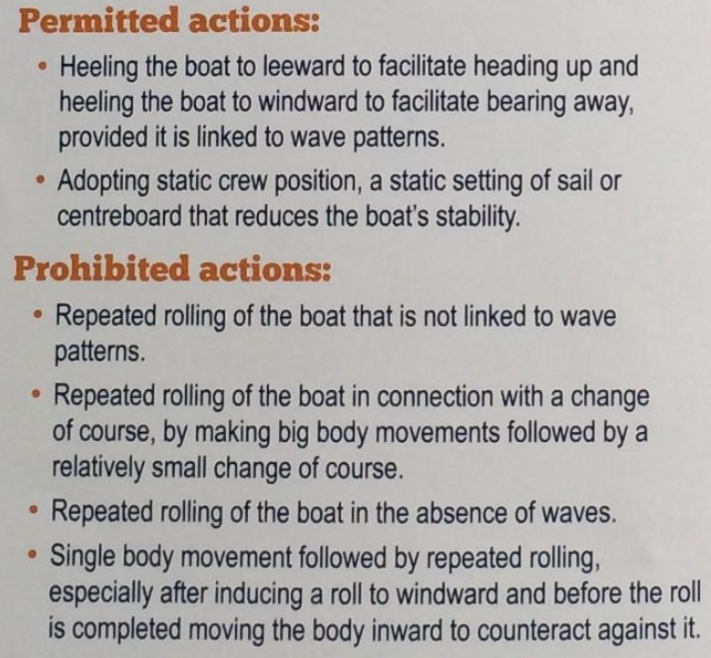 Rule 42 is the rule that governs what is permitted and what is prohibited in terms of propulsion; propulsion through the sailor’s actions and kinetics (including rocking, pumping and sculling).